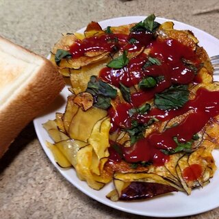 散歩の途中に戴いた新鮮なバジルを散らすと