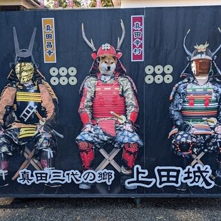 上田城二の丸の駐車場に車を止めてワンコ連れで
